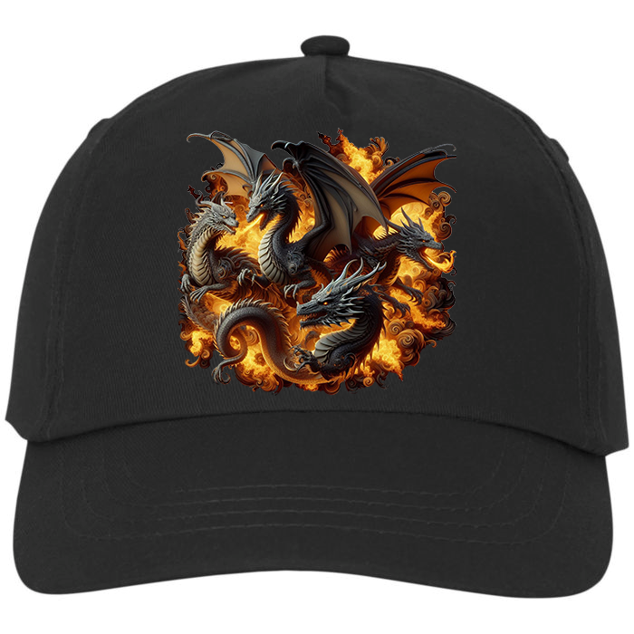 Laat je passie voor fantasy en mythische wezens ontvlammen met onze "Draken Vuurring" pet! Deze indrukwekkende zwarte cap toont een dynamische en epische illustratie van meerdere draken, verstrengeld in een wervelwind van vlammen. In het midden domineert een majestueuze gevleugelde draak, omringd door andere draken die een krachtige en dreigende sfeer creëren. De rijke details en de levendige vuureffecten maken dit een absolute blikvanger. Perfect voor fans van drakenverhalen, RPG's, of iedereen die een stoer en uniek accessoire zoekt. De cap is vervaardigd uit comfortabel materiaal en heeft een verstelbare sluiting voor een optimale pasvorm. Draag hem en omarm de vurige kracht van de draak!