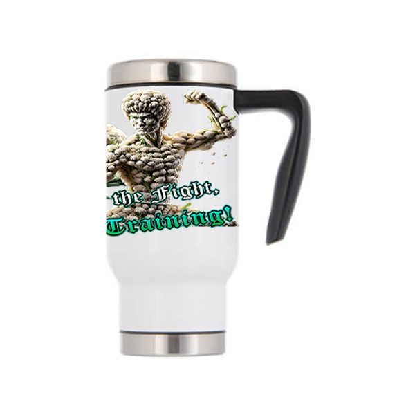 Deze unieke thermo drinkbeker is voorzien van een motiverende en humoristische afbeelding die perfect is voor fitnessliefhebbers en iedereen die van een gezonde levensstijl houdt. Het design toont twee indrukwekkende, gespierde figuren, gevormd uit groenten: de ene uit broccoli en de andere uit bloemkool. De broccolifiguur hanteert een komkommer als wapen, terwijl de bloemkoolfiguur zijn kracht toont in een pose. Onder de strijdende groentekampioenen staat de inspirerende tekst in een gotisch lettertype: "Don't Fear the Fight, Fear the Training!". Dit ontwerp combineert humor met een krachtige boodschap over doorzettingsvermogen, ideaal voor tijdens je workout of om je dagelijkse motivatie een boost te geven. Houd je drankjes warm of koud met deze originele en opvallende beker!
