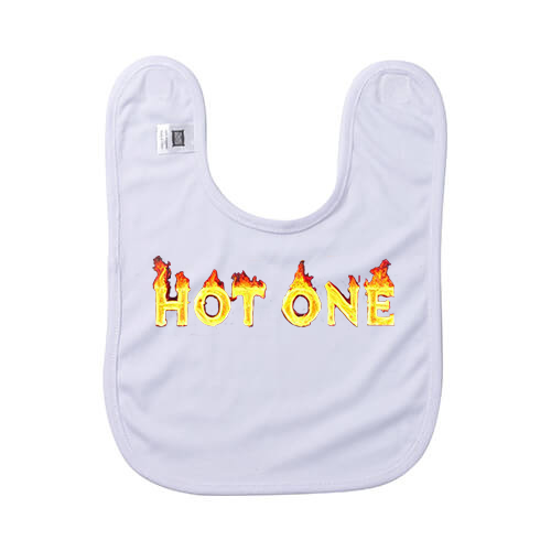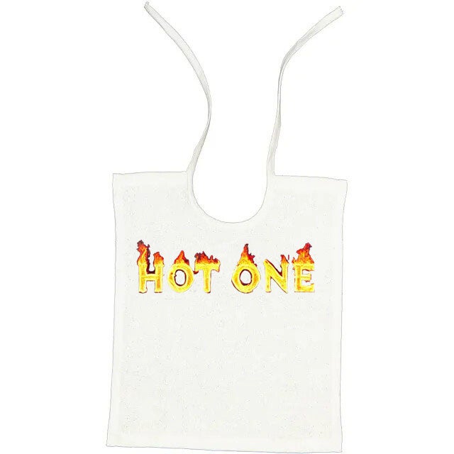 Bereid je voor op de 'hete' hapjes met dit stoere 'Hot One' slabbertje! Dit minimalistische maar krachtige design toont de woorden 'HOT ONE' in vlammende, geeloranje letters, alsof ze in vuur en vlam staan. De vlammen creëren een dynamisch en opvallend effect. Dit slabbertje is perfect voor baby's die al vroeg een pittige persoonlijkheid laten zien, voor liefhebbers van kruidig eten, of als een grappig en uniek cadeau. Het is zacht, praktisch om morsen te voorkomen, en voegt een vlammend accent toe aan elke maaltijd!